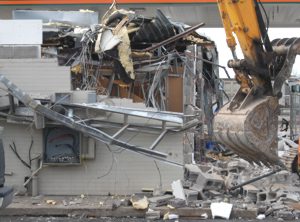 The action you see at the Patel Building, formerly Dunlop Tire Co. headquarters on Long Road, is somewhat exploratory. They are working on removing the asbestos. In an article by James Fink of Business First, owner Jayesh Patel says the building must be stabilized before any thought can be given to future plans. Mr. Patel paid $850,000 in 2013 for the property.