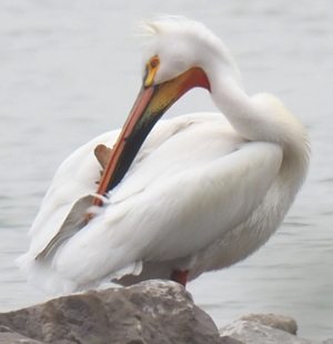 The American white pelican is one of the largest North American birds, with adults having a wing span of nearly 8 feet. They eat mostly small fish that occur in shallow wetlands, such as minnows, carp, and suckers, according to allaboutbirds.com. American white pelicans winter along the Gulf Coast of Mexico and fly back north each spring west of the Great Lakes. They generally spend summers in the Great Plains and Manitoba and Alberta. They have been spotted over the last few years near Rochester, Montezuma Refuge and Onondaga Lake.