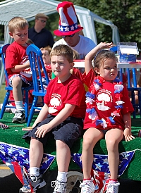 The Grand Island Cooperative Nursery School float (left) in our Independence Day parade was one of the best. Can you identify the children? My sister, Mary Stewart, is the photographer and it sure looks like GICoop teacher Vicki Wilkinson on the right when you enlarge the picture. Mary's photo of this dear little runner bringing up the rear of the kids race needs a name also. Email me at teddy@giecom.net if you can help with the names.