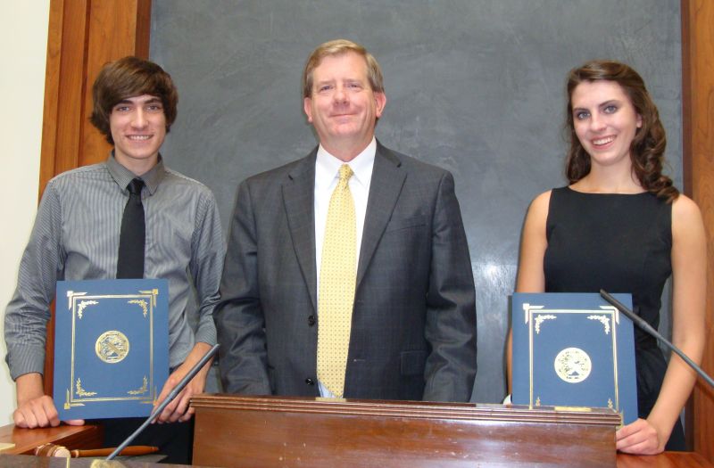 Erie County Legislator Kevin Hardwick, R-Tonawanda, honored M. Scott Stallard and Susan Head, the 2009-2010 Youth Ambassador Scholarship Winners for Grand Island, during the July 8 session of the Legislature. Both Ambassadors received proclamations honoring their achievements and excellent community service. The Ambassador Award is sponsored by the Grand Island Chamber of Commerce.