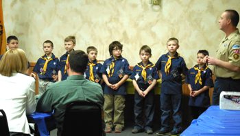 Wolf den receiving awards from Den Leader Steve Simpson.