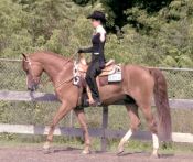Jackie has devoted a large amount of time and patience to achieve the goals she set for 2004. Her 3-year-old Morgan gelding came from New Jersey at the age of 9 months in 2001. Topic has only seriously been under saddle since April of this year. To have come as far as the team has in such a short amount of time is a testimony to the great athletic ability of her gelding and to this young rider's talent in training and riding this 3-year-old to his full ability. They truly are a team and a joy to watch in the show ring.