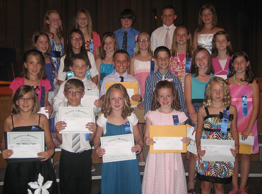 From fifth grade: Madelyn Konopczynski, David Pachla, Jenna VeRost, Emily Jelonek, Katelyn Newbould, and Sarah Swagler.