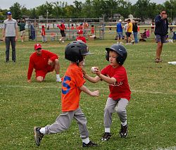 Grand Island Little League is alive and well. Saturday's games being played all over Vets Park proved just that. Young players on the Phillies T-Ball team shown above were evenly matched against the Mets team. The icing on the cake for the team was the birthday celebration of their coach, Jeff Shearer, complete with ice cream and cupcakes.