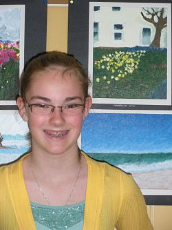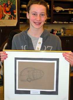 Click photos for larger view. Pictured with several art pieces from her portfolio is art student, Cassie Oursler. Cassie, who is an eighth grader at Connor Middle School, has been named “Connor’s Monthly Master” for the first month of the new year. The Monthly Master award showcases the achievements of middle school students whose hard work and artistic dedication are exemplary and who also shows a great deal of creativity and originality in their designs. Cassie is a very talented and hard working young artist. She reports that she has been interested in art for most of her life and has always found time to explore many kinds of materials. One of her favorite art memories is winning a savings bond in the Lion’s Club Peace Poster contest when she was in grade six. Asked what her favorite media to work with is, Cassie says that she can’t choose; there are many fun and different ways to use all the ones that she’s tried. She is inspired by nature and everything that she sees and, enjoys drawing what is on her mind and expressing her feelings. Cassie credits her art teacher and her family for their encouragement and support. Her uncle shares his art abilities and techniques and Cassie in turn, passes on her talents by teaching techniques that she’s learned with her younger brother. She hopes to have a career someday that involves sports or animals, but is sure that art will always figure prominently in her life. The VCMS Art Department is proud to make Cassie their January 2009 “Connor's Monthly Master.” Middle School 2009 News - JULY - DEC. Middle School 2008 News Middle School 2007 News Middle School 2006 News Middle School 2005 News Middle School 2004 News Previous Middle School News |