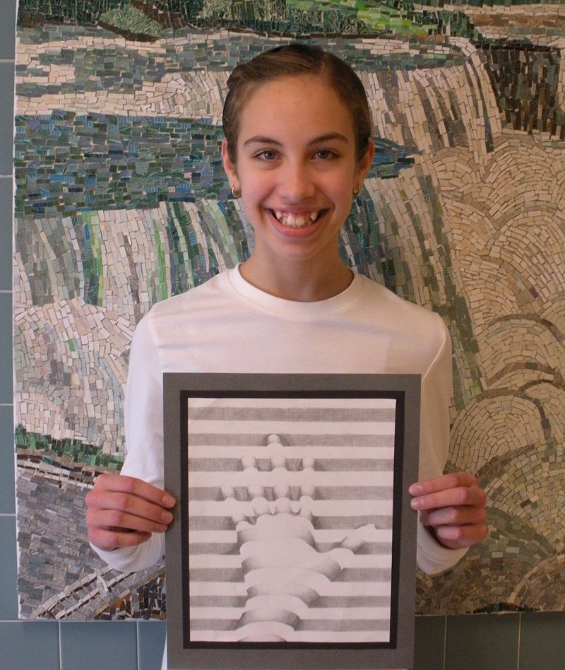 Eighth grade artists Amelia Stepnoski and Kurt Laschinger, students at Veronica E. Connor Middle School, have been selected as the “K-12 Artist of the Month” and as “Connor’s Monthly Master” respectively. Both students are the first recipients of these two art awards for the new school year.Amelia and Kurt are both outstanding young middle school artists who have distinguished themselves by consistently producing sensitive, high quality artworks to the best of their abilities. Both students display attention to detail, creative problem solving, positive work ethic and a high degree of control over their chosen media, allowing them to lucidly use the visual arts as a language and as a personal form of self-expression. Amelia and Kurt are enrolled in Studio In Art, an eighth grade art acceleration, allowing them to earn high school credit while still in middle school.