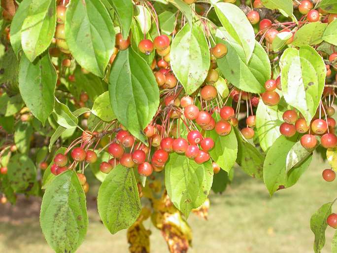 Ripening Crabapples: October, 2004 Crabapple trees were once planted to harvest the small fleshy fruit for preserves and other food items but now they are planted for ornamental purposes. The birds and small mammals feed off the small fruit throughout the winter months.