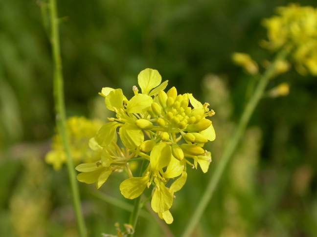 Black Mustard: Early July, 2004 Long used in herbal medicine, black mustard grows over large areas of open meadows, roadsides and other waste areas. The plants start to bloom in early summer and continue growing (up to 6 foot in height) and blooming until mid Fall. The seeds contain an irritating oil that may cause serious blistering of the skin.