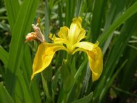 Yellow flag: June, 2004 The yellow flag is an escaped cultivar, originally from Europe. Preferring bogs, marsh, pond, lake and streamsides, this hardy and showy plant may be found blooming from early June through mid-August.