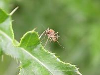 Mosquito at rest: Late June, 2004 Just a photo of one of the billions of the wicked, blood sucking monsters that inhabit/infest the Island mostly in the spring and early summer. Only the females take a blood meal as they require components found in blood to develop a viable egg cluch. The males usually drink flower nectar.