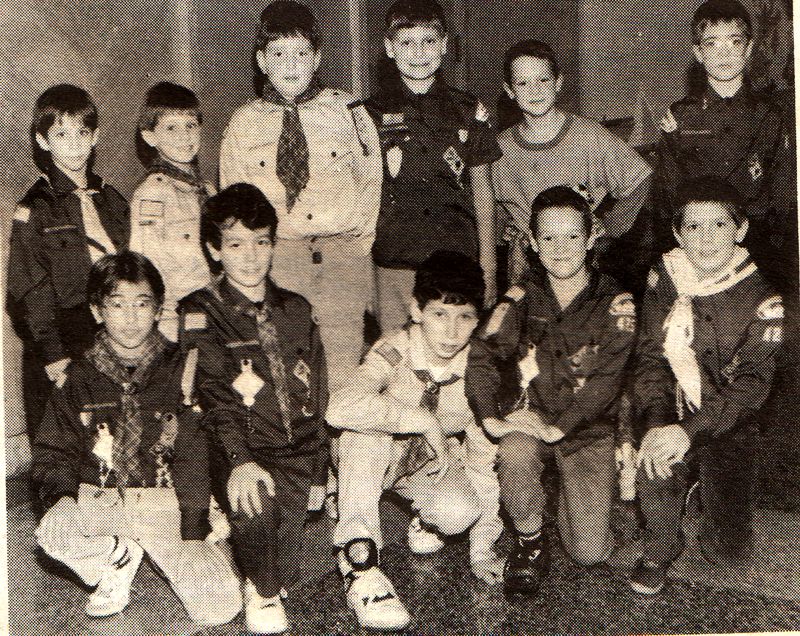 Special prizes were awarded to individuals and pack winners of Cub Pack 425, who had the highest sales in the 1991-1992 fund raiser in November 1991. Recognized for high sales were (standing) Justin Schaber (wolf-highest sales); Joe Dann, Mike Karnath, Jordan Becher, Scott Wallace and Jim Neely (in den with highest total sales); (kneeling) Jim Maurer (second highest sales in pack); Steve Sirianni (Webelo - highest sales); Jason Stiner (highest sales); Matt Wallace (third highest) and John Ochtyun (bear-highest sales).