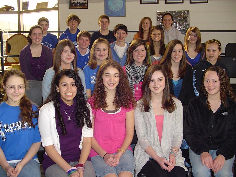 Middle School Chorus Front row: Abigail Chambers, Ashley Dragonette, Corey Wilkinson, Jenna Stuflosky and Elliot Michki.